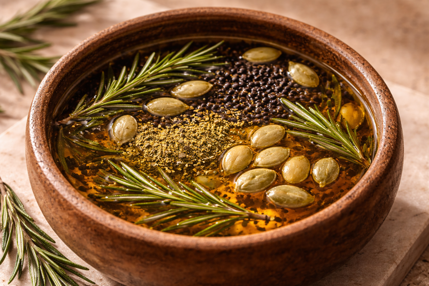 Rosmarinic acid and thymoquinone help nourish and support healthy roots.